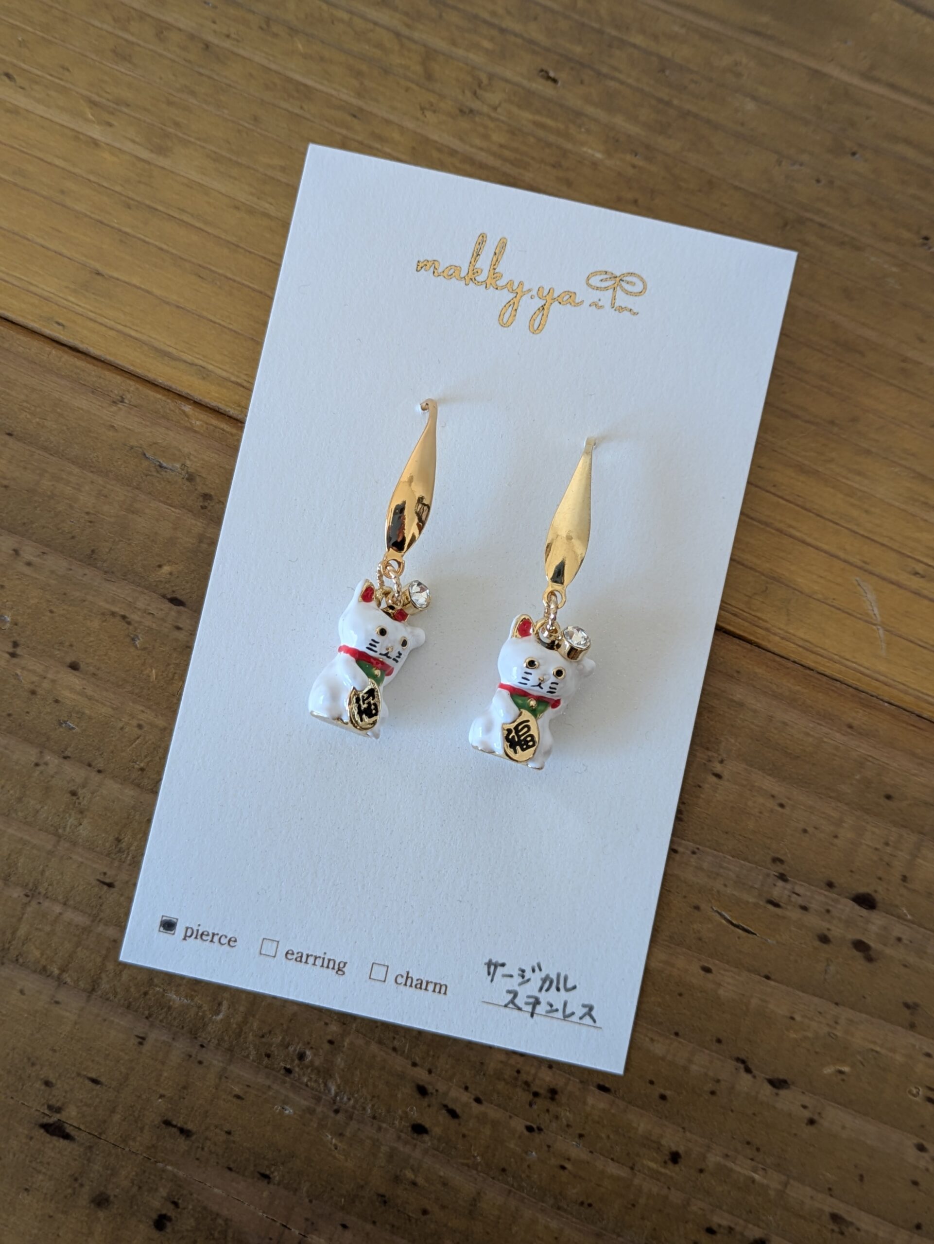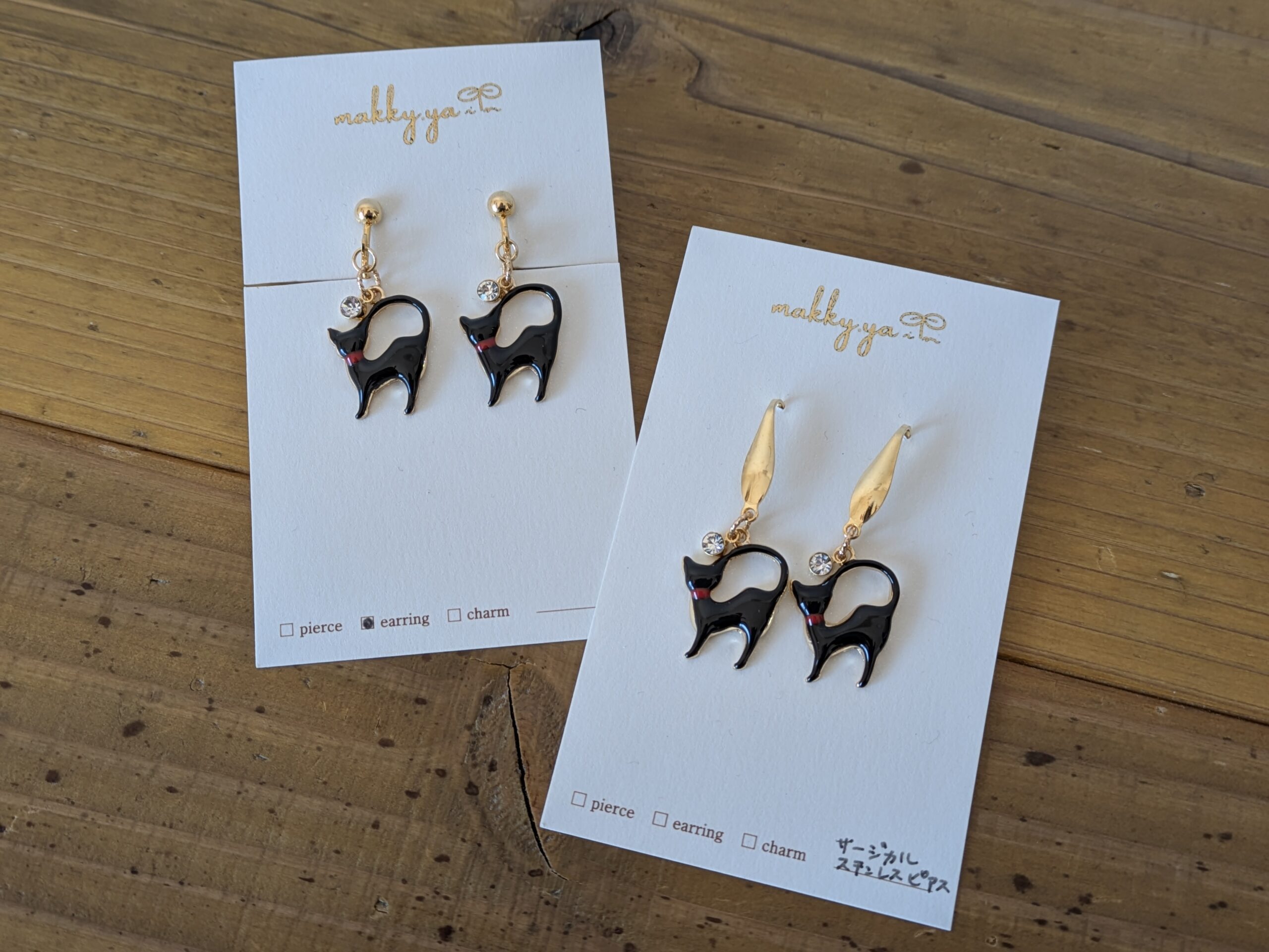 こちらの黒猫ちゃんは、イヤリングもありますよ✨️ こちらもさり気に猫ちゃんです 和が好きな方は、こんな猫ちゃんはいかがでしょう? ハッピーを呼んでくれそうです♥ 猫の他にもこんなキュートなピアスもありますよ♪ 是非見に来て下さいね! 1 2 【作品紹介】ねこ展の途中ですが… 前の記事 【本日は野菜の日※写真追加】たまちゃんファームのお野菜販売します! 次の記事